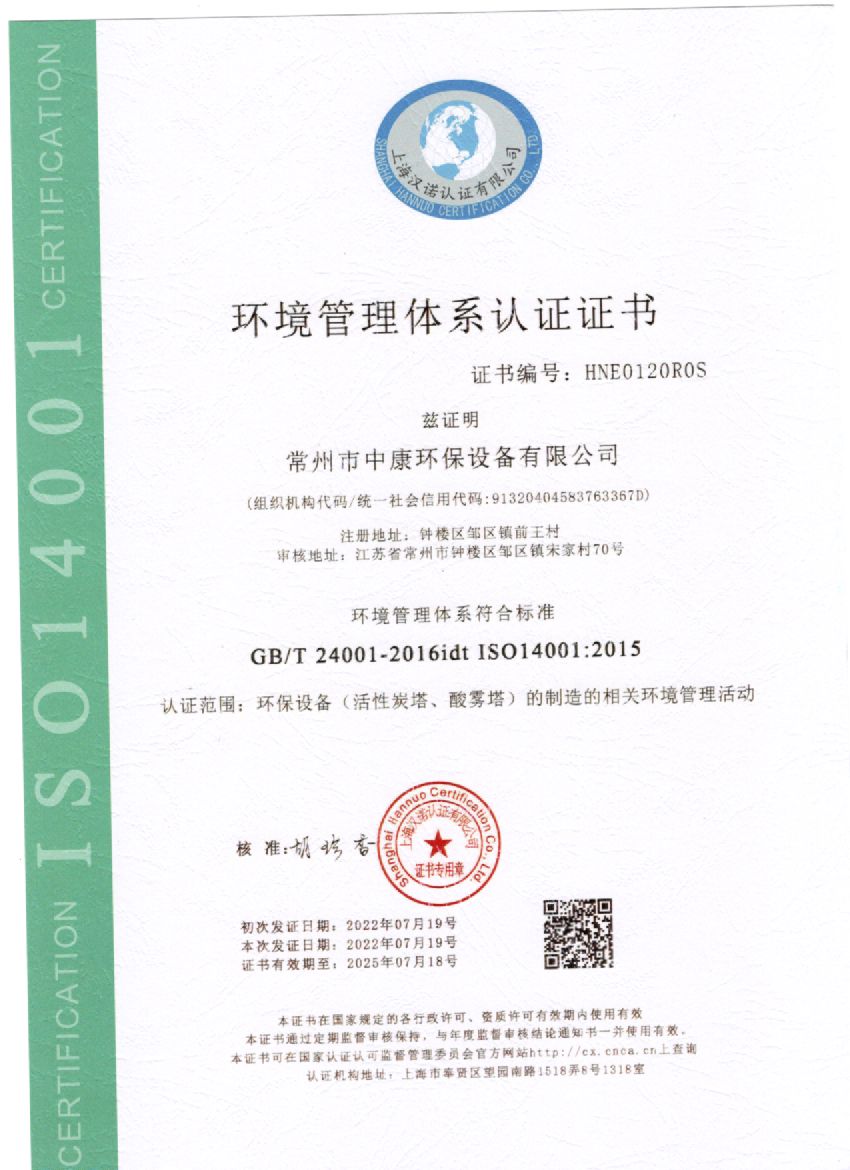 環(huán)境管理體系認證證書(shū)